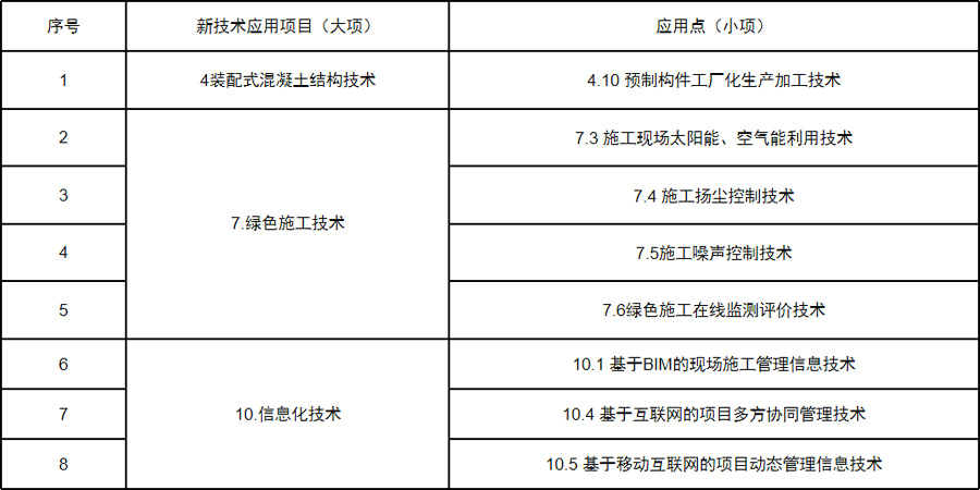 1、推广应用建筑业10项新技术中的3大项8子项;